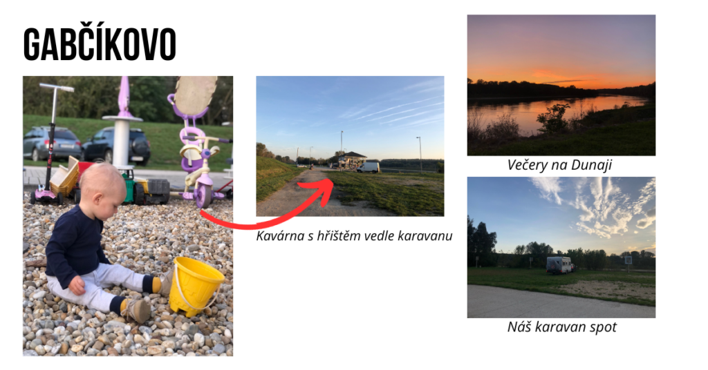 Naše první zastávka vedla na dunajský ostrov, kde jsme zaparkovali karavan kousek od vodního díla Gabčíkovo.