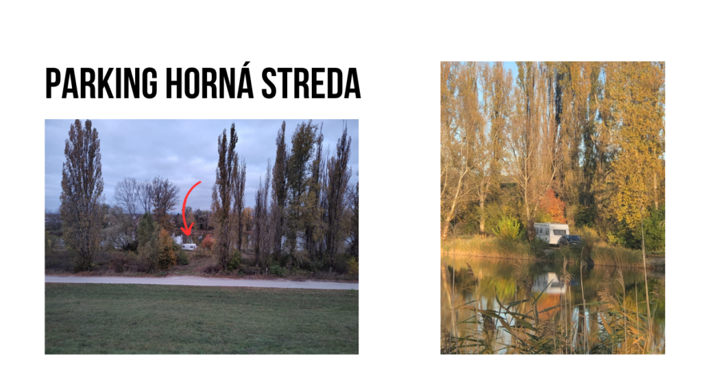 PARKOVÁNÍ/STÁNÍ PŘES NOC: Zaparkovali jsme už u vesnice Horná Streda u rybníka Štrkovisko Dlhé kusy, kde jsme byli od večera sami. Jedno z nejhezčích a nejklidnějších stání, které jsme kdy měli. Uznejte sami. 😉